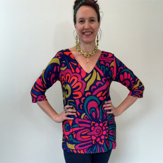 Signature Gemma V-Neck Top with 3/4 Sleeve